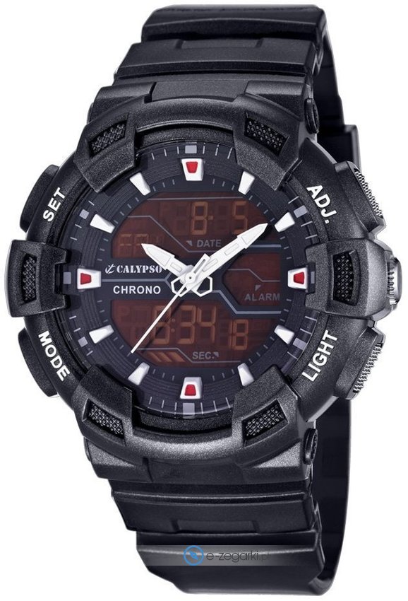 Zegarek męski K5579-6 marki Calypso to idealna pozycja dla ludzi ceniących sobie dbałość o detale oraz sprawne zachowanie mechanizmów. Ciekawy wygląd czasomierza osiągnięto m.in. poprzez tarczę w kolorze czarnym. Zegarek ten pokazuje aktualny czas w formacie analogowo - cyfrowym dzięki temu odczyt jest bezproblemowy. Koperta szeroka jest na 51 mm - charakteryzuje się okrągłym kształtem.