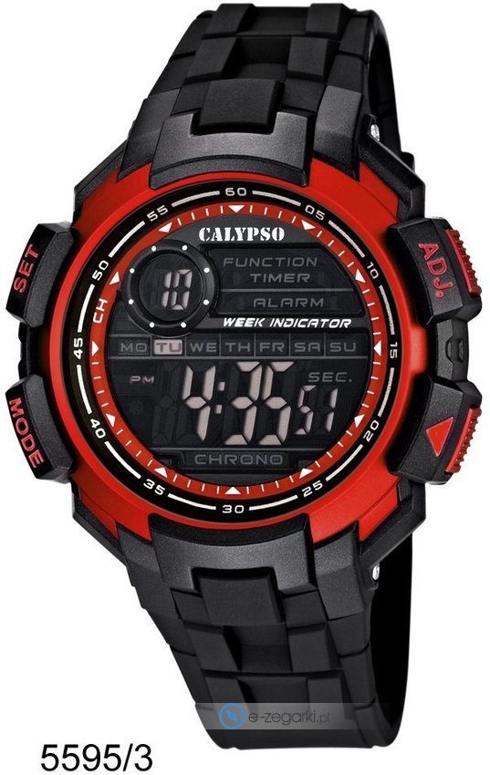 Model K5595-3 marki Calypso to stylowy zegarek naręczny męski, który posiada pomysłowe rozwiązania i funkcje. Charakteru nadaje wysokiej klasy cyferblat w kolorze czarnym. Zegarek ten pokazuje godzinę w formacie cyfrowym dzięki czemu odczyt jest intuicyjny. Koperta szeroka jest na 47 mm - posiada okrągły kształt.