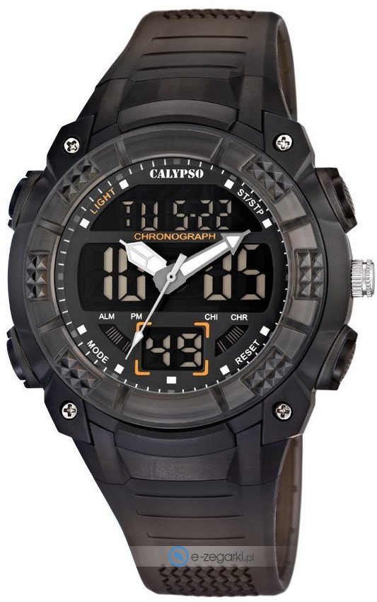 Zegarek męski K5601-8 marki Calypso to stylowe połączenie funkcjonalności i modnego designu. Wysokiej trwałości cyferblat zegarka pokryto czarnym kolorem. Godzina przedstawiona jest w sposób analogowo - cyfrowy co intuicyjnie pozwala ją odczytać. Koperta szeroka jest na 45 mm - w kształcie okrągłym.