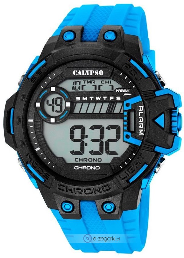 Model K5696-2 marki Calypso to stylowy zegarek naręczny męski, który wyposażono w pomysłowe rozwiązania i funkcje. Ciekawy wygląd czasomierza uzyskano dzięki tarczy w kolorze niebieskim. Koperta szeroka jest na 54 mm - charakteryzuje się okrągłym kształtem.