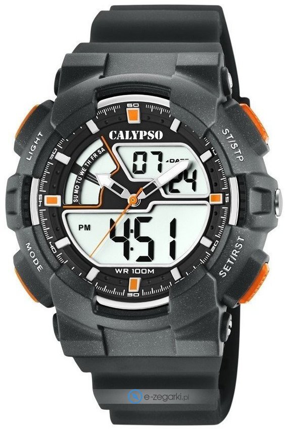 Zegarek męski K5771-4 marki Calypso to dobre połączenie funkcjonalności i modnego designu. Ciekawą budowę zegarka osiągnięto dzięki tarczy w kolorze szarym. Koperta szeroka jest na 50 mm - charakteryzuje się okrągłym kształtem.