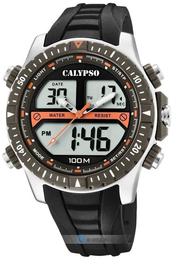Zegarek męski K5773-1 marki Calypso to idealne połączenie funkcjonalności oraz modnego designu. Charakteru nadaje wysokiej klasy tarcza w kolorze czarnym. Zegarek ten prezentuje aktualny czas w formacie analogowo - cyfrowym dzięki czemu odczyt jest bardzo łatwy. Koperta szeroka jest na 47 mm - w kształcie okrągłym.