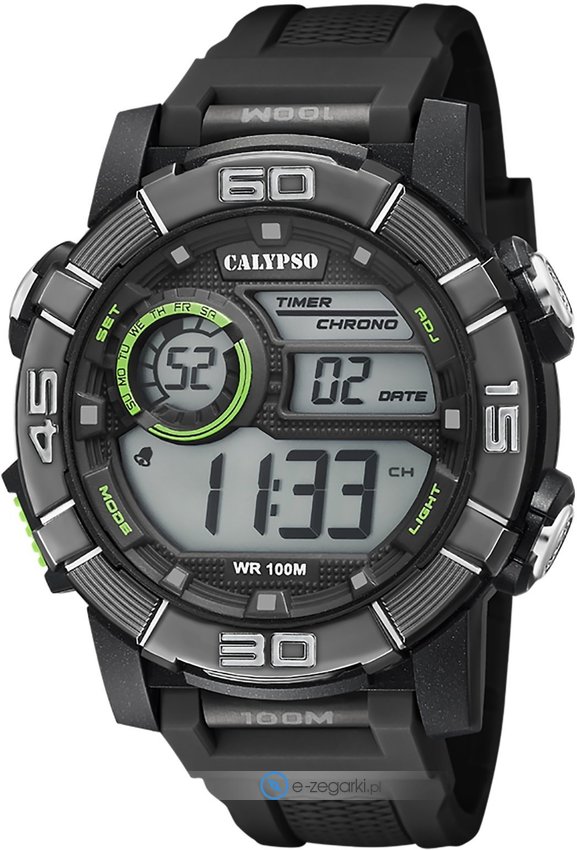 Zegarek męski K5818-4 marki Calypso to idealna pozycja dla ludzi ceniących sobie dbałość o szczegóły jak również sprawne zachowanie mechanizmów. Niebanalny wygląd czasomierza uzyskano m.in. poprzez cyferblat w kolorze szarym. Pokazana metodą cyfrową bieżąca godzina jest czytelna i szybka do sprawdzenia. Koperta szeroka jest na 35 mm - w kształcie okrągłym.