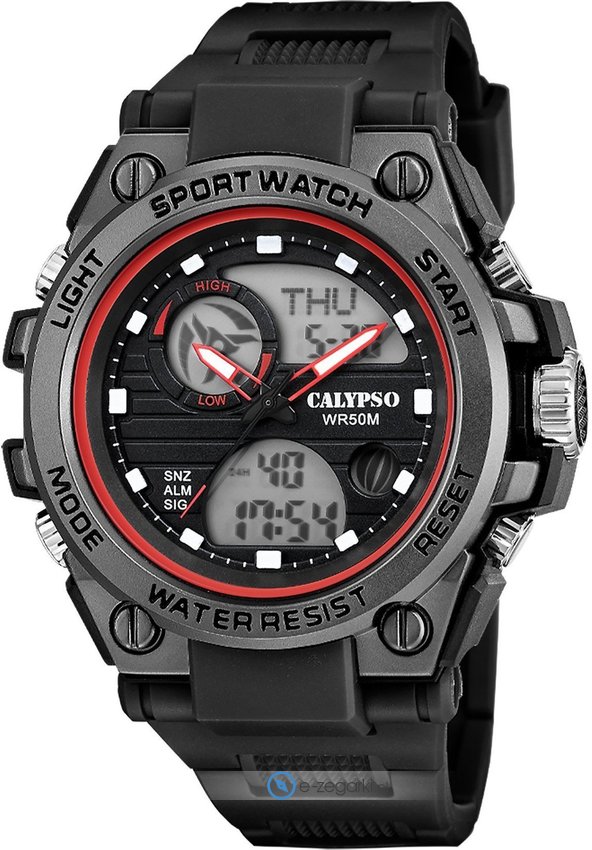 Zegarek męski K5854-4 marki Calypso to idealne połączenie funkcjonalności oraz ciekawego wzornictwa. Stylu dodaje wysokiej jakości cyferblat w kolorze czarnym. Zaprezentowana metodą analogowo - cyfrową bieżąca godzina jest czytelna i szybka do odczytania. Koperta szeroka jest na 52 mm - cechuje się okrągłym kształtem.