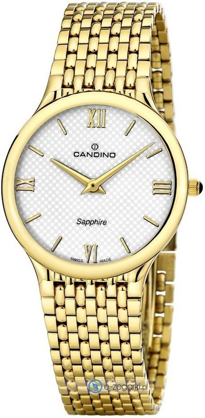 Szwajcarska marka Candino aktualnie siedzibę ma w mieście Bienne. Historia produkcji zegarków Candino sięga 1947 roku, w którym to wystartowała manufaktura. Obecnie brand Candino pasuje się w czołówce szwajcarskich wytwórców czasomierzy, których produkty można bez problemu nabyć w wielu krajach całego świata. Ich znana precyzja oraz jakość wykonania jest wyznacznikiem dla szeregu konkurencyjnych firm. Zgodnie ze stosowanymi nakazami na czasomierzach Candino oczywiście możemy zobaczyć napis Swiss Made. Jak przystało na tak znaną markę użyte tu podzespoły to najwyższy poziom jaki możemy znaleźć w zegarkach.