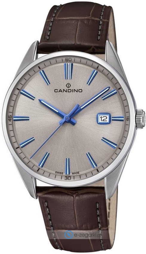 Szwajcarska firma Candino swoją siedzibę ma w mieście Bienne. Historia produkcji zegarków Candino sięga 1947 roku, w którym to rozpoczęła się działalność. Obecnie marka Candino należy do czołowych szwajcarskich producentów zegarków, których produkty można z powodzeniem kupić w wielu krajach całego świata. Ich legendarna precyzja oraz jakość wykonania jest wzorem dla wielu konkurencyjnych brandów. Zgodnie ze stosowanymi przepisami na zegarkach Candino oczywiście możemy zobaczyć napis Swiss Made. Jak przystało na tak znaną markę użyte tu podzespoły to najwyższy poziom jaki możemy spotkać w zegarkach.