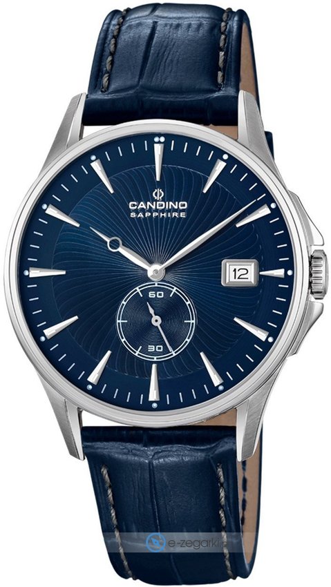 Model C4636-3 marki Candino to gustowny zegarek naręczny męski, który jest wyposażony w pomysłowe rozwiązania i funkcje. Charakterystyczny wygląd zegarka uzyskano m.in. poprzez tarczę w kolorze niebieskim. Godzina pokazywana jest w sposób analogowy co bez trudu pozwala ją odczytać. Koperta szeroka jest na 40 mm - w kształcie okrągłym.