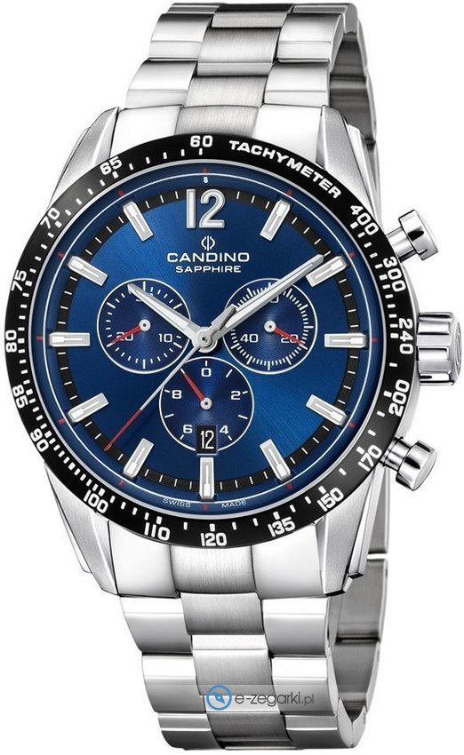 Szwajcarska firma Candino swoją siedzibę ma w mieście Bienne. Historia produkcji zegarków Candino sięga 1947 roku, w którym to wystartowała manufaktura. Aktualnie marka Candino pasuje się w czołówce szwajcarskich producentów czasomierzy, których produkty można bez problemu nabyć w kilkudziesięciu krajach całego świata. Ich uznana precyzja oraz jakość wykonania jest wzorem dla szeregu konkurencyjnych firm. Zgodnie ze stosowanymi kanonami na czasomierzach Candino oczywiście może znajdować się napis Swiss Made. Jak przystało na tak cenioną markę zastosowane tu podzespoły to najwyższy stopień jaki możemy mieć w zegarkach.