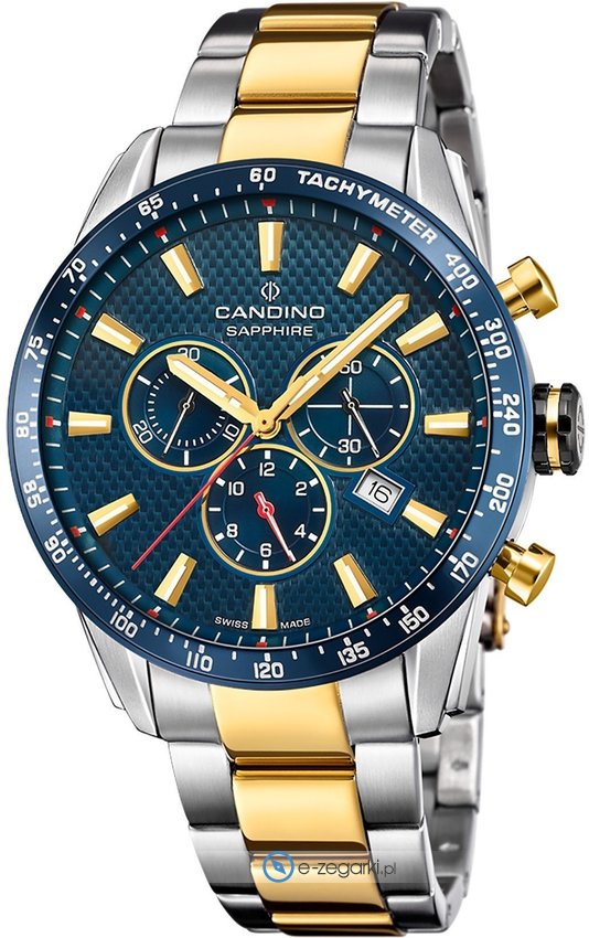 Szwajcarska firma Candino swoją siedzibę ma w mieście Bienne. Początki produkcji sięgają 1947 roku, w którym to rozpoczęła się działalność. Aktualnie marka Candino zalicza się do legendarnych szwajcarskich wytwórców czasomierzy, których produkty można bezpiecznie nabyć w wielu krajach całego świata. Ich legendarna precyzja oraz jakość wykonania jest wzorem dla szeregu konkurencyjnych brandów. Zgodnie ze stosowanymi kanonami na czasomierzach Candino oczywiście możemy zobaczyć napis Swiss Made. Jak przystało na szwajcarską markę użyte tu podzespoły to najwyższy poziom jaki możemy mieć w zegarkach.