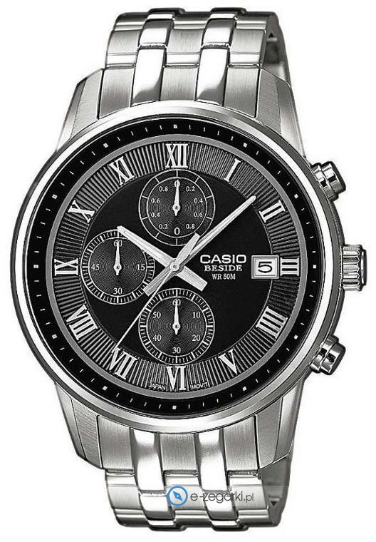 Zegarek męski BEM-511D-1AVEF marki Casio to idealne połączenie funkcjonalności oraz modnego designu. Model ten pochodzi z serii Casio Beside. Pokazana metodą analogową bieżąca godzina jest czytelna i prosta do sprawdzenia. Koperta szeroka jest na 42 mm oraz ma grubość 11 mm - w kształcie okrągłym.