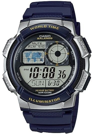 Casio AE-1000W-2A to męski zegarek kierowany dla osób szukających zegarka z kolekcji Casio Collection. Charakteru dodaje wysokiej klasy tarcza w kolorze niebieskim. Godzina przedstawiona jest w sposób cyfrowy co bez trudu pozwala ją odczytać. Koperta w barwach koloru niebieskiego szeroka jest na 44 mm oraz ma grubość 13 mm - posiada okrągły kształt.