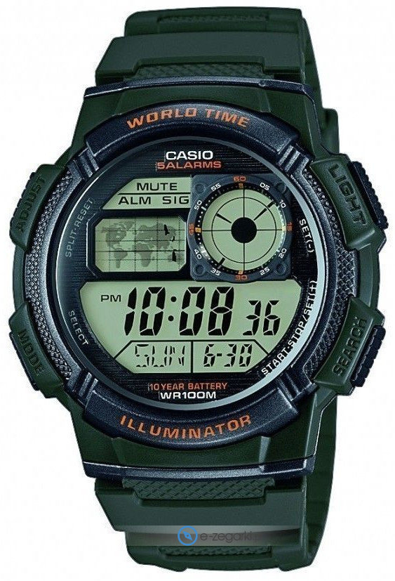 Zegarek AE-1000W-3AVEF posiada kwarcowy mechanizm zasilany tradycyjną baterią. Pasek koloru zielonego wykonany jest z wysokiej jakości tworzywa sztucznego.
