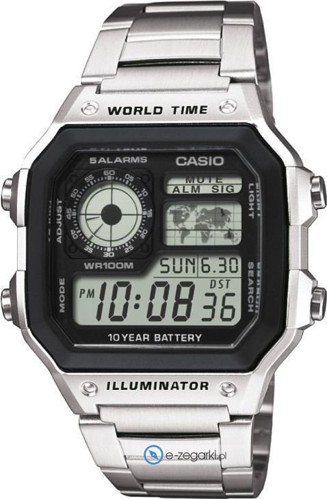 Zegarek AE-1200WHD-1AVEF posiada kwarcowy mechanizm zasilany standardową baterią. Odporna na korozję oraz oddziaływanie czynników atmosferycznych bransoleta jest w kolorze srebrnym zapewnia wysoką jakość i trwałość.