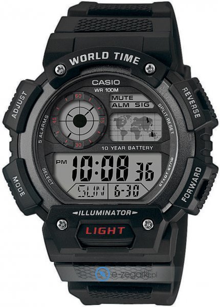 Zasilanie zegarka AE-1400WH-1AVEF to normalna bateria kwarcowa. Pasek jest w kolorze czarnym zrobiony jest z wysokiej jakości tworzywa sztucznego.