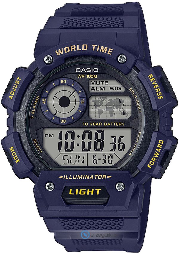 Zegarek AE-1400WH-2AVEF wyposażony jest w mechanizm zasilany klasyczną baterią kwarcową. Pasek jest w kolorze fioletowym zrobiony jest z wysokiej jakości tworzywa sztucznego.