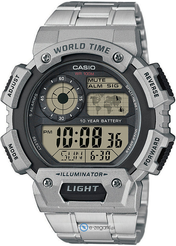 Zegarek AE-1400WHD-1AVEF wyposażony jest w mechanizm zasilany tradycyjną baterią kwarcową. Odporna na korozję oraz oddziaływanie czynników atmosferycznych bransoleta koloru srebrnego cechuje się jakością, a także trwałością.