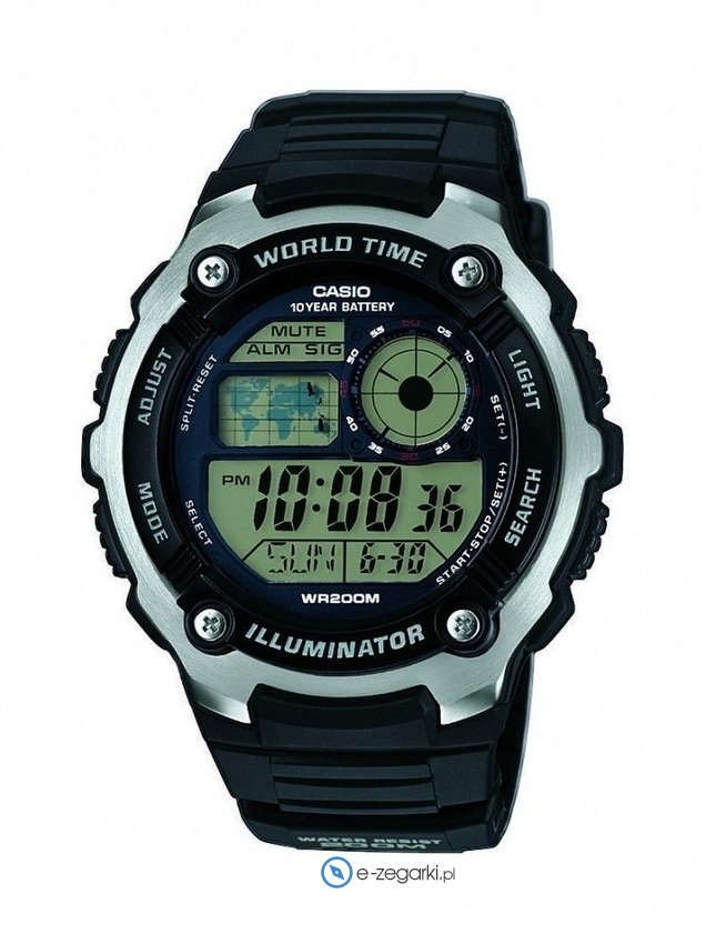 Zegarek AE-2100W-1AVEF wyposażony jest w mechanizm zasilany standardową baterią kwarcową. Pasek wykonany jest z wysokiej jakości tworzywa sztucznego.