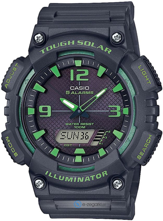 Zegarek AQ-S810W-8A3VEF posiada mechanizm solarny zasilany dowolnym źródłem światła. Pasek jest w kolorze szarym wykonany jest z wysokiej jakości tworzywa sztucznego.