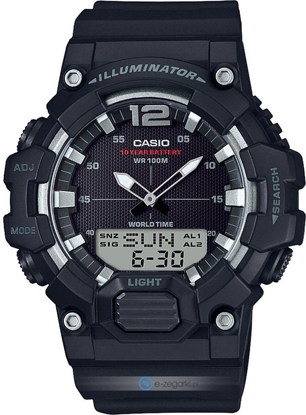 Zegarek męski HDC-700-1AVEF marki Casio to stylowe połączenie funkcjonalności oraz ciekawego wzornictwa. Model ten w gamie innych zegarków tego producenta występuje w kolekcji Casio Collection. Nieschematyczny wygląd czasomierza osiągnięto również dzięki tarczy w kolorze czarnym. Zaprezentowana metodą analogowo - cyfrową aktualna godzina jest czytelna i łatwa do sprawdzenia. Koperta w odcieniach koloru czarnego szeroka jest na 45 mm oraz ma grubość 15 mm.