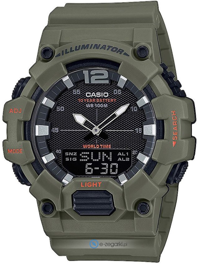 Zegarek męski HDC-700-3A2VEF marki Casio to stylowe połączenie funkcjonalności oraz ciekawego wzornictwa. Model ten zalicza się do serii Casio Collection. Godzina zaprezentowana jest w sposób analogowo - cyfrowy co intuicyjnie pozwala ją odczytać. Koperta szeroka jest na 48.8 mm oraz ma grubość 16.6 mm - w kształcie okrągłym.