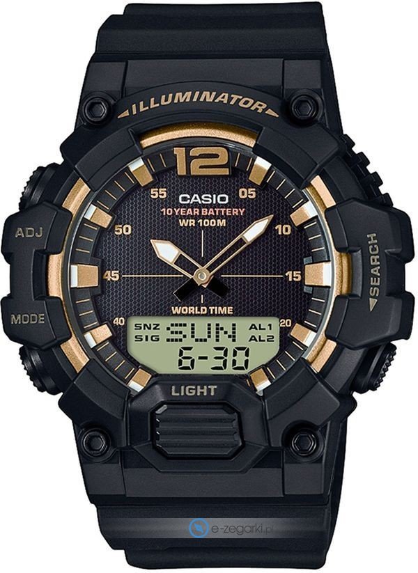 Casio HDC-700-9A - męski zegarek przeznaczony dla osób szukających zegarka z rodziny Casio Collection. Ciekawy wygląd czasomierza osiągnięto m.in. poprzez cyferblat w kolorze czarnym. Zegarek ten prezentuje godzinę w formacie analogowo - cyfrowym dzięki temu odczyt jest bardzo łatwy. Koperta została pokryta kolorem czarnym szeroka jest na 53.3 mm oraz ma grubość 53.3 mm - ma okrągły kształt.