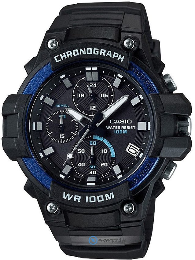 Kwarcowa bateria umieszczona w modelu MCW-110H-2AVEF zapewnia zasilanie jego mechanizmu. Pasek w tonacji koloru czarnego wykonany jest z wysokiej jakości tworzywa sztucznego.