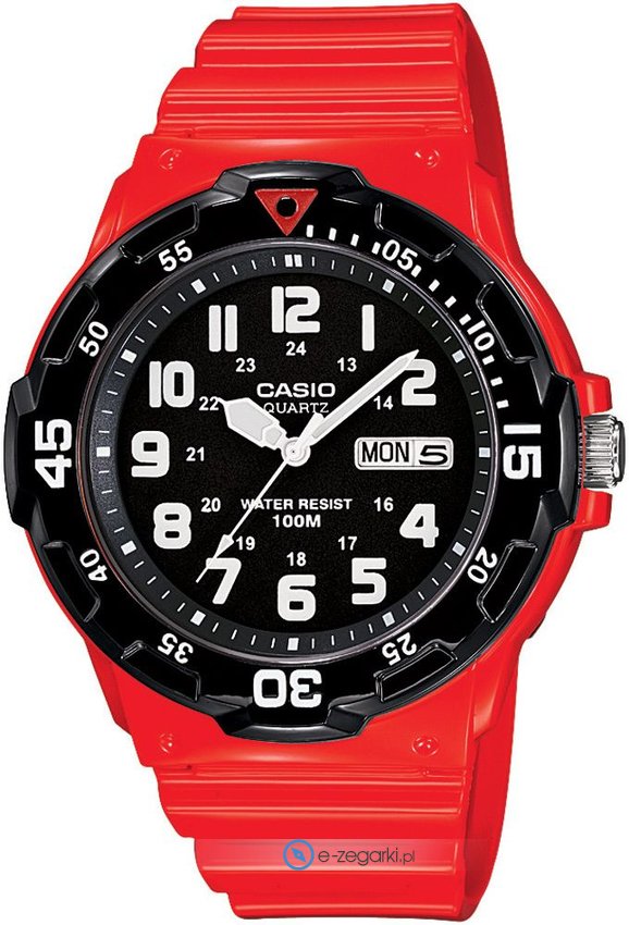 Model MRW-200HC-4BVEF posiada mechanizm zasilany klasyczną baterią kwarcową. Pasek wykonany jest z wysokiej jakości tworzywa sztucznego.