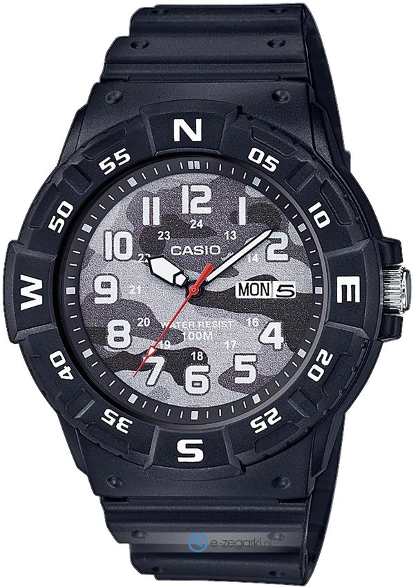 Męski zegarek MRW-220HCM-1BVEF z serii Casio Collection marki Casio to połączenie smaku oraz nowatorskich funkcji. Ciekawą budowę zegarka uzyskano dzięki tarczy w kolorze szarym. Zegarek ten prezentuje aktualny czas w formacie analogowym dzięki temu odczyt jest bezproblemowy. Koperta jest w kolorze czarnym szeroka jest na 45.5 mm oraz ma grubość 11.6 mm - w kształcie okrągłym.