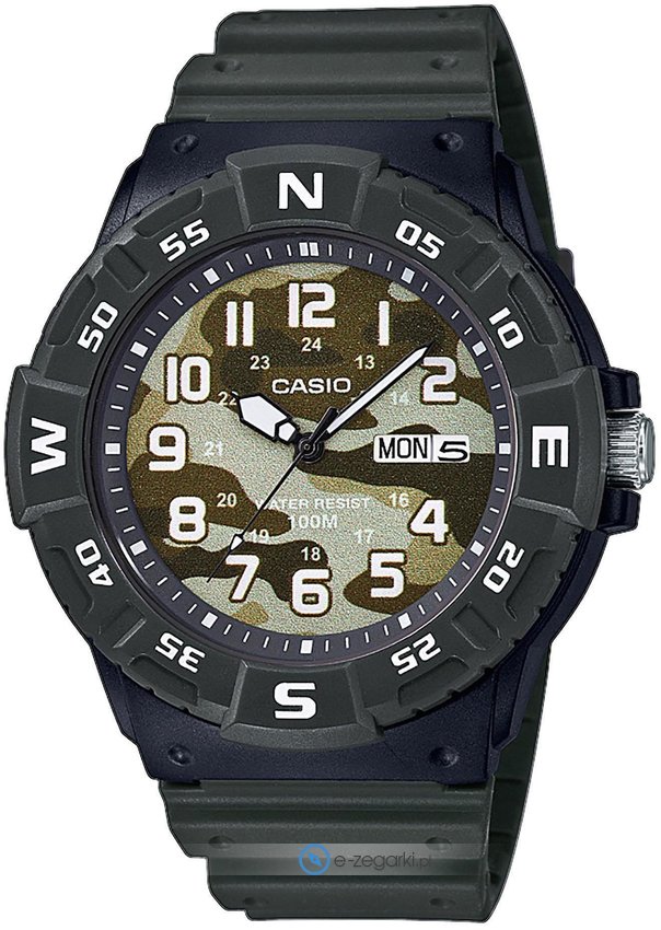 Zegarek MRW-220HCM-3BVEF wyposażony jest w mechanizm zasilany standardową baterią kwarcową. Pasek koloru zielonego zrobiony jest z wysokiej jakości tworzywa sztucznego.