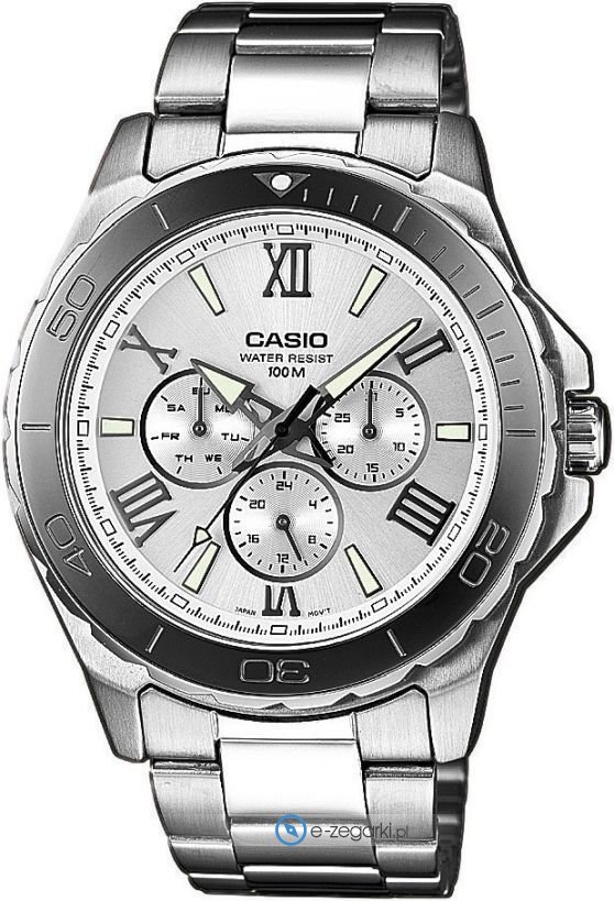 Zasilanie zegarka MTD-1075D-7AVEF to normalna bateria kwarcowa. Odporna na korozję oraz działanie czynników atmosferycznych bransoleta w odcieniach koloru srebrnego cechuje się jakością, a także trwałością.