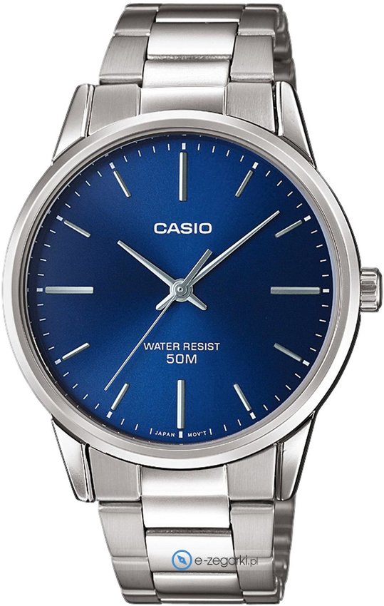 Zegarek MTP-1303PD-2FVEF marki Casio to elegancki zegarek naręczny męski, który posiada pomysłowe rozwiązania oraz funkcje. Model ten zalicza się do kolekcji Casio Collection. Wysokiej jakości tarczę zegarka ozdobiono niebieskim kolorem. Aktualna godzina pokazywana jest w sposób analogowy co bez trudu pozwala ją odczytać. Koperta jest w kolorze srebrnym szeroka jest na 40 mm oraz ma grubość 8.1 mm - w kształcie okrągłym.