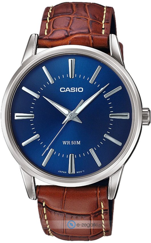 Zegarek męski MTP-1303PL-2AVEF marki Casio to stylowe połączenie funkcjonalności oraz ciekawego wzornictwa. Model ten w gamie innych zegarków tego producenta występuje w kolekcji Casio Collection. Niebanalny wygląd czasomierza osiągnięto również dzięki tarczy w kolorze niebieskim. Pokazana metodą analogową aktualna godzina jest czytelna i szybka do odczytania. Koperta została ozdobiona kolorem srebrnym szeroka jest na 40 mm oraz ma grubość 8.1 mm - posiada okrągły kształt.