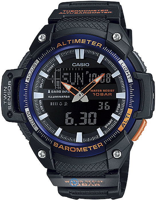 Dodatkowo zegarek Casio SGW-450H-2BER jest wyposażony w funkcje takie jak termometr wskazujący aktualną temperaturę w stopniach celcjusza oraz fahrenheita, wysokościomierz sprawdzający obecną wysokość nad poziomem morza jak również barometr - który sprawdza aktualne ciśnienie atmosferyczne.