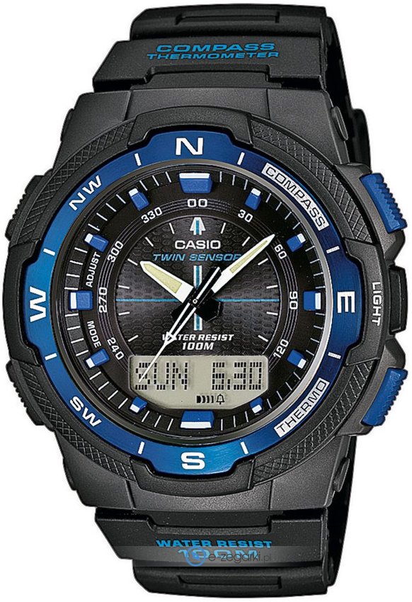 Dodatkowo zegarek Casio SGW-500H-2BVER posiada funkcje takie jak kompas, który idealnie sprawdzi się podczas podróży wskazując kierunki geograficzne: północ, południe, wschód, zachód jak również termometr wskazujący aktualną temperaturę w stopniach celcjusza lub fahrenheita.
