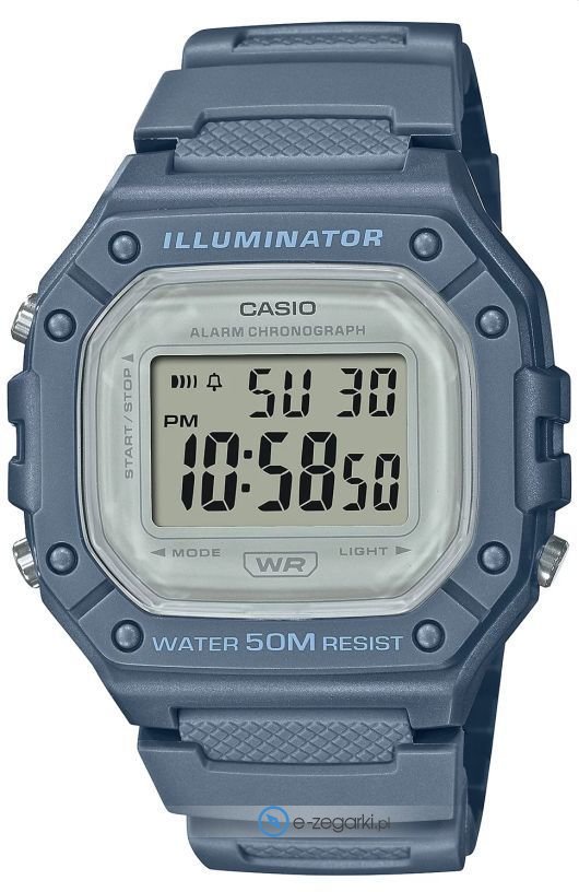 Kwarcowa bateria zamontowana w zegarku W-218HC-2AVEF zapewnia zasilanie jego mechanizmu. Pasek w odcieniach koloru niebieskiego wykonany jest z wysokiej jakości tworzywa sztucznego.