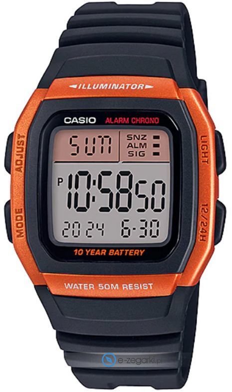Zegarek męski W-96H-4A2VEF marki Casio to dobre połączenie funkcjonalności oraz ciekawego designu. Model ten zalicza się do serii Casio Collection. Zegarek ten pokazuje godzinę w formacie cyfrowym dzięki czemu odczyt jest bardzo łatwy. Koperta szeroka jest na 35.7 mm oraz ma grubość 12.5 mm.