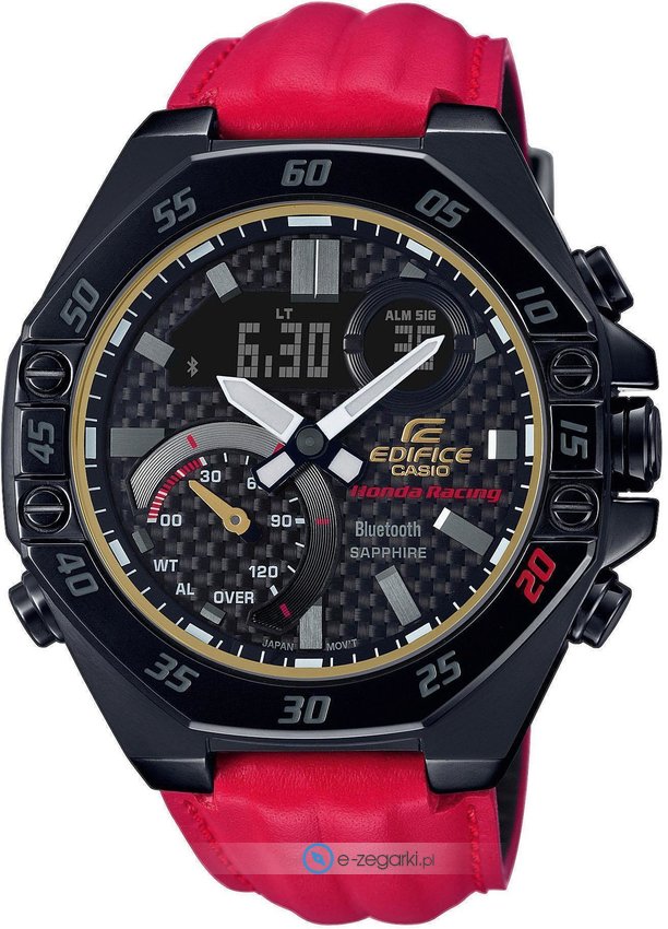 Wśród dodatkowych cech zegarka Casio ECB-10HR-1AER Honda Racing można wyróżnić bluetooth z pomocą którego połączymy zegarek ze smartwatchem.