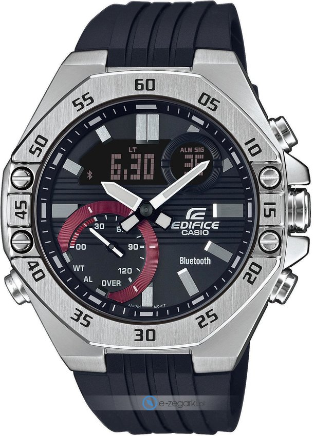 Wśród dodatkowych cech zegarka Casio ECB-10P-1AEF można wyróżnić bluetooth z pomocą którego sparujemy zegarek ze smartwatchem.