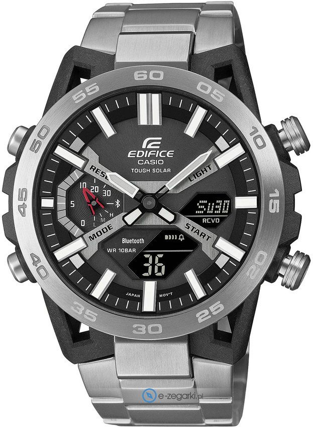 Smartwatch - model ten wyposażono w inteligentny komponent Smart, który pozwala na dokonywanie połączeń ze smartphonem. Dzięki tej opcji mamy dodyspozycji więcej funkcji, które ustawiamy za pomocą telefonu. Zegarek ECB-2000D-1AEF został wyposażony w mechanizm solarny zasilany dowolnym źródłem światła.