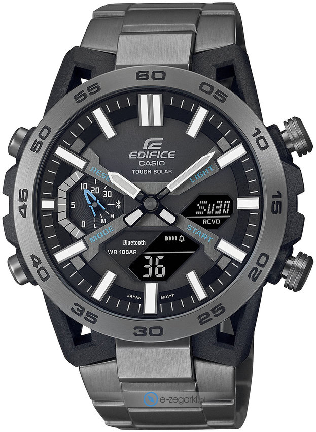 Smartwatch - zastosowanie nowoczesnej technologii Smart powoduje, że zegarek ten ma zdecydowanie więcej możliwości niż przeciętny zegarek, wszystko dzięki połączeniu ze smartphonem. Po zainstalowaniu specjalnej aplikacji producenta w telefonie mamy do dyspozycji dodatkowe funkcje zegarka. Zegarek ECB-2000DC-1AEF posiada mechanizm solarny zasilany jakimkolwiek źródłem światła.