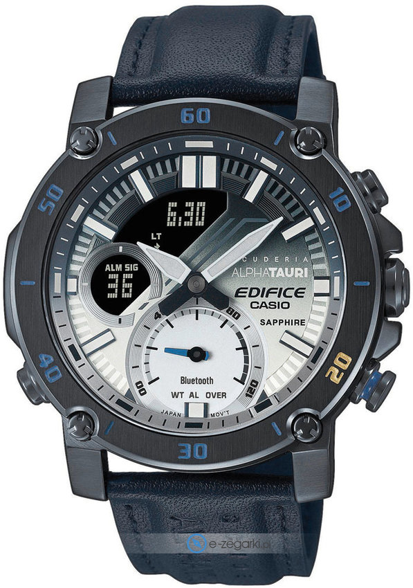 Zegarek męski ECB-20AT-2AER Scuderia Alpha Tauri marki Casio to idealne połączenie funkcjonalności oraz modnego wzornictwa. Model ten jest z kolekcji Casio Edifice. Godzina prezentowana jest w sposób analogowo - cyfrowy co bez trudu pozwala ją odczytać. Koperta jest w kolorze czarnym szeroka jest na 46 mm oraz ma grubość 12.5 mm - w kształcie okrągłym.