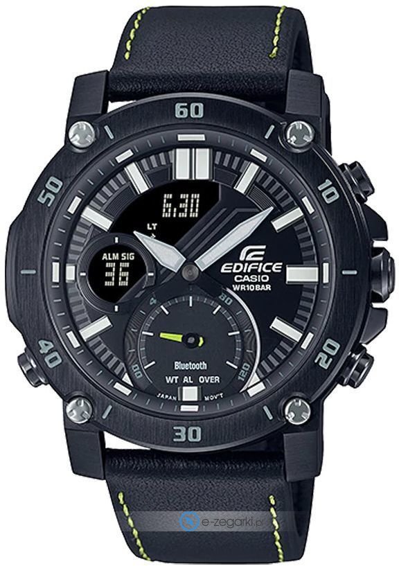 Casio ECB-20CL-1A - męski zegarek kierowany dla osób szukających zegarka z serii Casio Edifice. Cyferblat zegarka jest w kolorze czarnym. Zegarek ten pokazuje aktualny czas w formacie analogowo - cyfrowym dzięki temu odczyt jest bardzo łatwy. Koperta jest w kolorze czarnym szeroka jest na 49.5 mm oraz ma grubość 49.5 mm - w kształcie okrągłym.