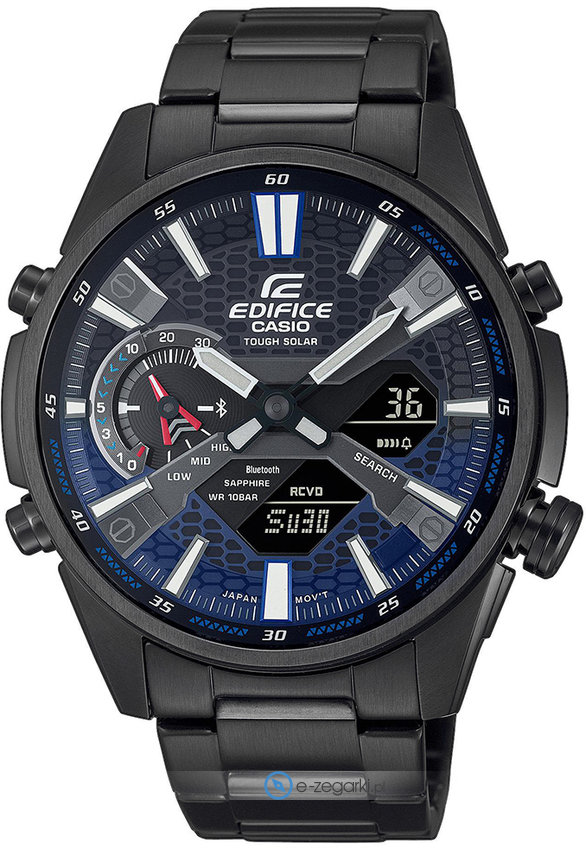 Smartwatch - wykorzystanie nowoczesnej technologii Smart powoduje, że zegarek ten ma zdecydowanie więcej możliwości niż tradycyjny zegarek, wszystko dzięki integracji ze smartphonem. Po zainstalowaniu aplikacji dostarczanej przez producenta w telefonie mamy do dyspozycji dodatkowe opcje zegarka. Zegarek ECB-S100DC-2AEF został wyposażony w mechanizm solarny zasilany jakimkolwiek źródłem światła.