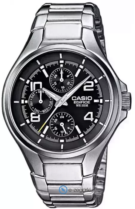 Zegarek EF-316D-1AVEG wyposażony jest w mechanizm zasilany standardową baterią kwarcową. Odporna na korozję oraz działanie czynników atmosferycznych bransoleta w tonacji koloru srebrnego zapewnia wysoką jakość i trwałość.