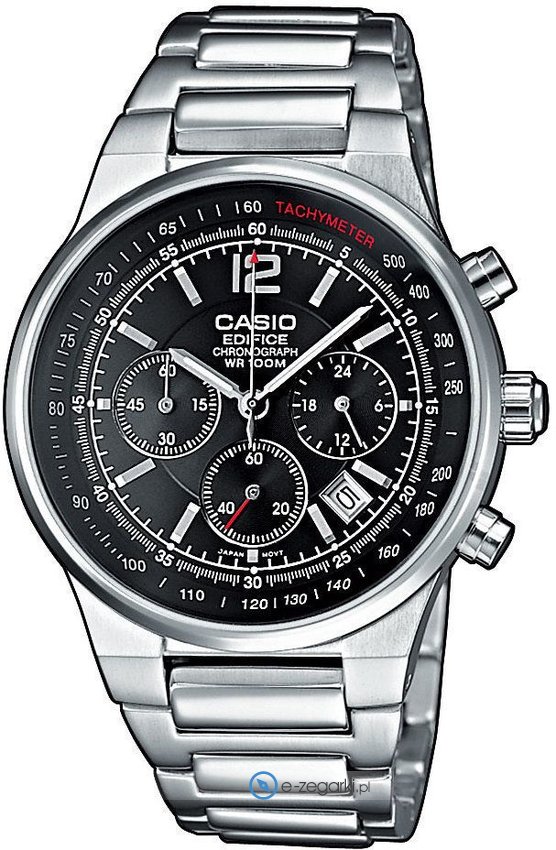 Zegarek męski EF-500D-1AV zalicza się do rodziny Casio Edifice marki Casio. Charakterystyczną konstrukcję zegarka osiągnięto z pomocą tarczy w kolorze czarnym. Godzina przedstawiona jest w sposób analogowy co bez trudu pozwala ją odczytać. Koperta szeroka jest na 39 mm oraz ma grubość 12 mm.