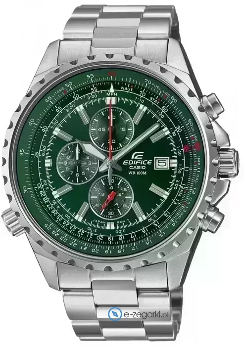 Zegarek EF-527D-3AVEF wyposażony jest w mechanizm zasilany standardową baterią kwarcową. Wytrzymała bransoleta w odcieniach koloru srebrnego wykonana ze stali nierdzewnej gwarantuje wysoką jakość i trwałość.