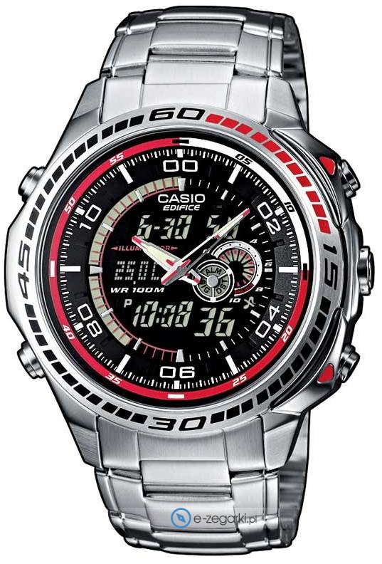 Casio EFA-121D-1AVEF to męski zegarek przeznaczony dla osób szukających zegarka z rodziny Casio Edifice. Atrakcyjny wygląd zegarka uzyskano m.in. poprzez cyferblat w kolorze czarnym. Godzina zaprezentowana jest w sposób analogowo - cyfrowy co intuicyjnie pozwala ją odczytać. Koperta jest pokryta kolorem srebrnym szeroka jest na 44 mm oraz ma grubość 13 mm - cechuje się okrągłym kształtem.