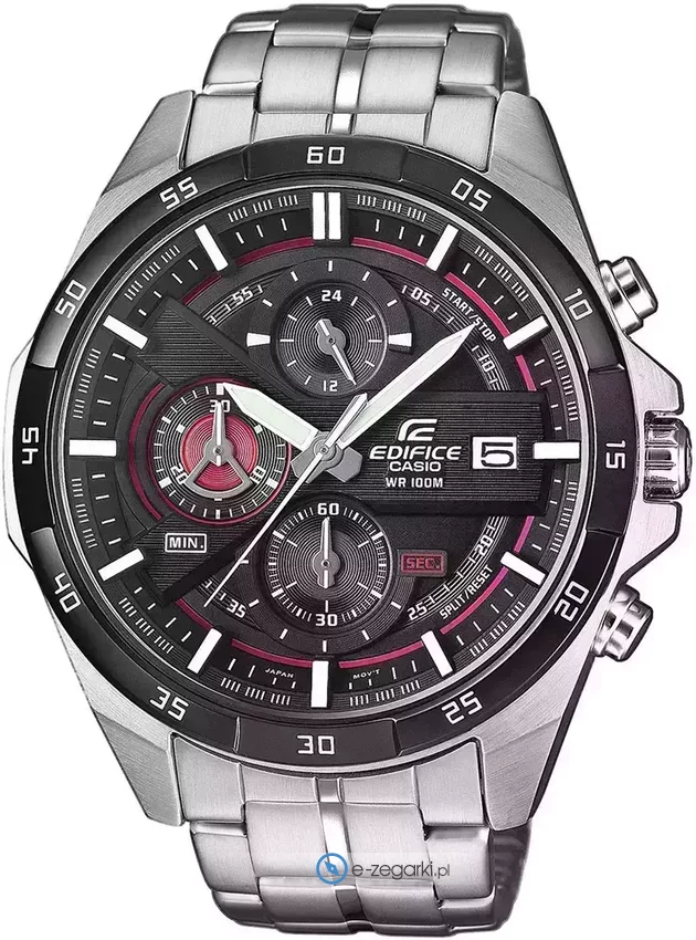Zegarek EFR-556DB-1AVUEF posiada kwarcowy mechanizm zasilany standardową baterią. Wytrzymała bransoleta jest w kolorze srebrnym wytworzona ze stali nierdzewnej zapewnia dużo lepszą jakość i trwałość.