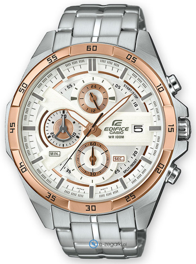 Zegarek EFR-556DB-7AVUEF zasilany jest za pomocą baterii kwarcowej. Wytrzymała bransoleta srebrnego koloru wytworzona ze stali nierdzewnej zapewnia wysoką jakość i trwałość.