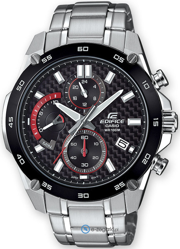 Zegarek EFR-557CDB-1AVUEF posiada kwarcowy mechanizm zasilany normalną baterią. Wytrzymała bransoleta jest w kolorze srebrnym wytworzona ze stali nierdzewnej gwarantuje wysoką jakość oraz trwałość.